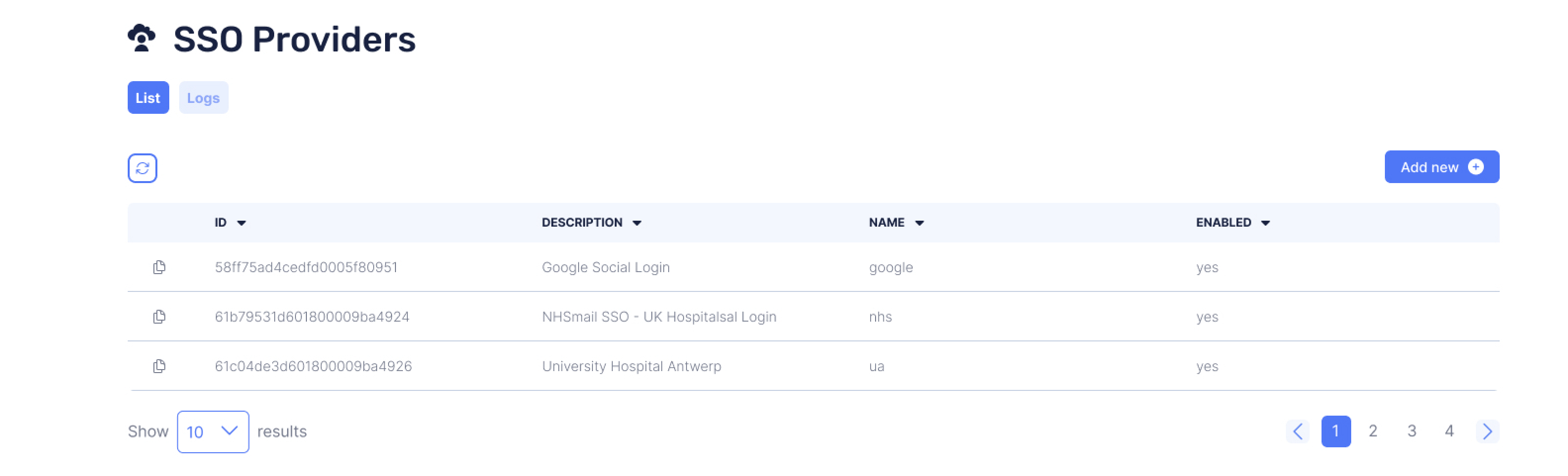 Go to "Add new" to register a new provider and fill in the required information. It should look something like this: