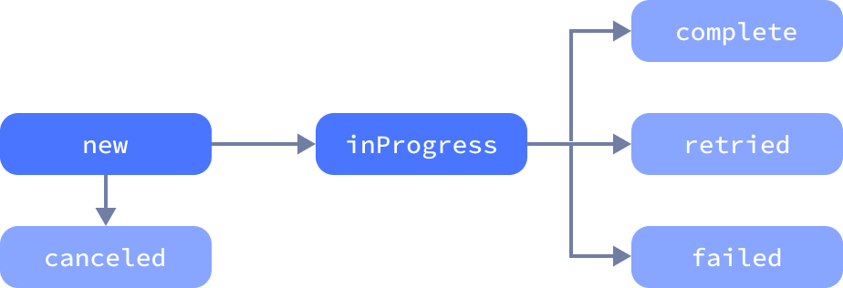 When a retry policy is applicable the Task status is set to `retried` and a new Task is created with the same properties. The new Task will include a `retryForTaskIds` field containing the id of the original Task. In turn, the original task will receive a `retriedByTaskId` field holding the id of the new Task.